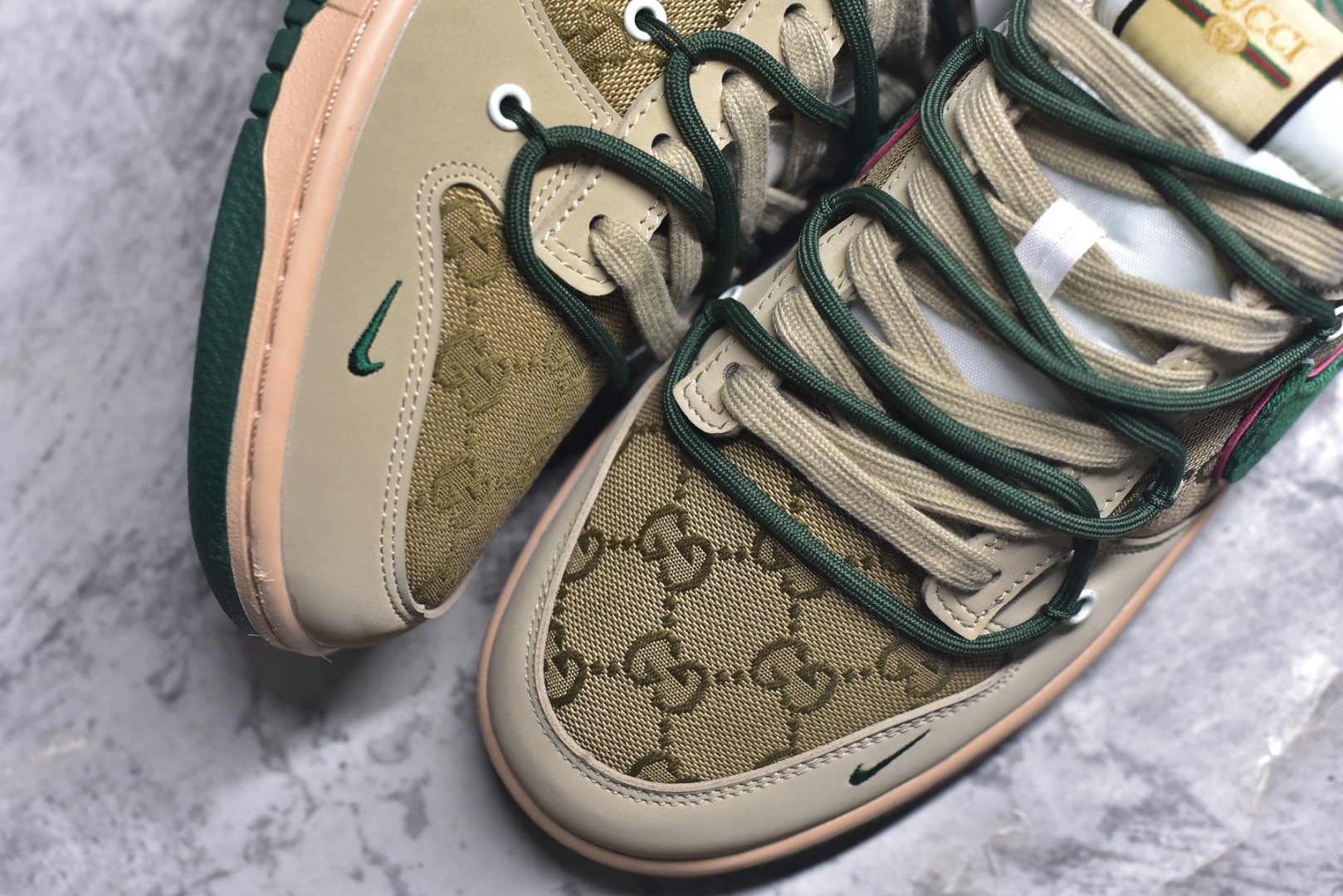 #Nike SB Dunk Low Gucci联名 绑带绿勾勾 周年高端定制 低帮休闲板鞋 DM6868-087 #定制鞋盒 大厂纯原品质出货 超高清洁度 皮料切割干净无任何毛边 细节完美